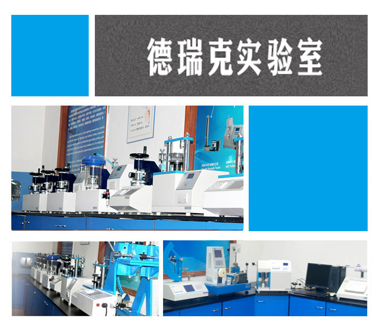 德瑞克除了擁有完善的科研、生產(chǎn)團(tuán)隊(duì)和標(biāo)準(zhǔn)車間外,還擁有一個(gè)國(guó)際化的標(biāo)準(zhǔn)實(shí)驗(yàn)室。實(shí)驗(yàn)室總面積約200m2,配備了紙品包裝檢測(cè)儀器60余臺(tái),總價(jià)值超過(guò)1000萬(wàn)元,涵蓋抗壓、強(qiáng)度、拉力、耐破、耐折、厚度、撕裂、柔軟度、戳穿、平滑度、剝離、水分、壓縮、熱封、密封等多類檢測(cè)項(xiàng)目。