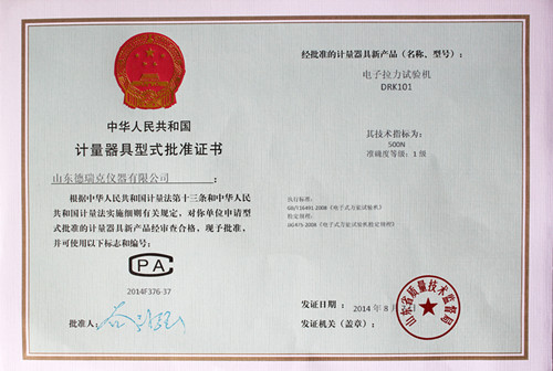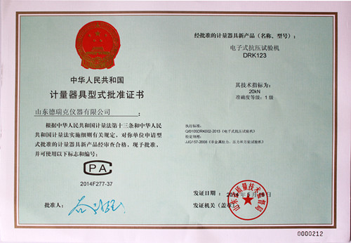 近日,德瑞克接到市局通知,在濟南市質(zhì)量技術(shù)監(jiān)督局一樓計量器具型式許可證窗口領(lǐng)取到了電子拉力試驗機型式批準(zhǔn)證書(證書編號2014F376-37),加上之前領(lǐng)取的電子式抗壓試驗機(證書編號2014F277-37)、電子式壓縮試驗儀(證書編號2014F278-37)的型式批準(zhǔn)證書,至此,德瑞克涉及的國家法定監(jiān)管的計量產(chǎn)品已全部獲得證書。