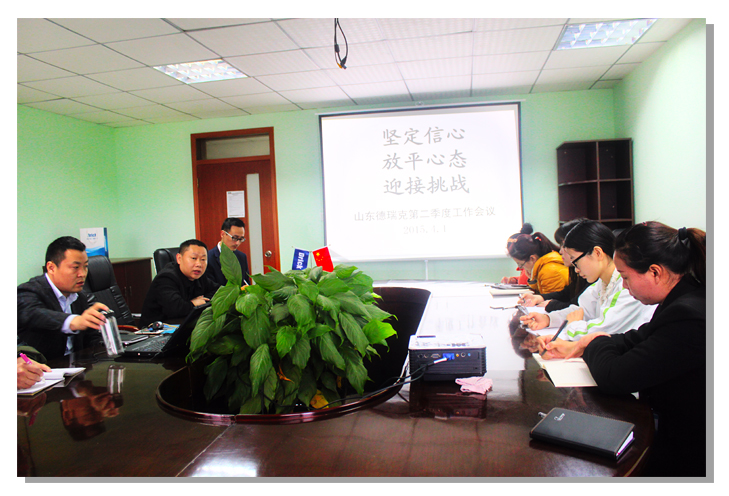 4月1日早上9:00,山東德瑞克公司2015年第二季度工作會議準時召開。本次會議總結(jié)了第一季度工作,分析當前市場形勢,部署了第二季度工作任務,提出將進一步轉(zhuǎn)變工作模式、強化管理,推進公司做強做優(yōu),更好地服務于新老客戶。