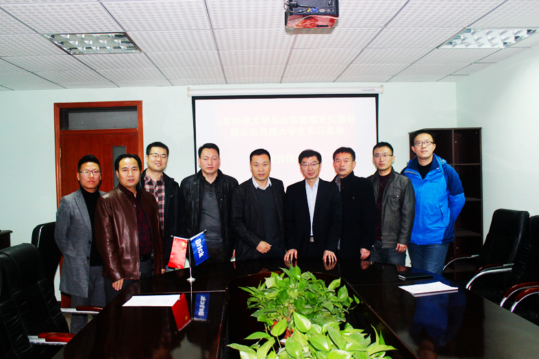 山東德瑞克儀器有限公司總經理王亞彬現場迎接,雙方就校企合作的思路展開了熱烈的討論,郝迎偉副書記首先充分肯定了教學實踐基地建立的意義。他指出,高校的首要任務是人才培養,而目前畢業生缺少的就是實際動手能力,與企業的合作可以很好地解決這個問題,同時學院的師資力量和實驗室資源可以在企業的研發研究和企業職工培訓方面發揮積極作用。山東師范大學信息科學與工程學院有能力做好這些工作。他同時也強調,山東師范大學信息科學與工程學院一直高度重視校企合作,通過校企深度融合,不僅能夠為大學生提升實踐能力,同時也能為大學生創新創業提供廣闊平臺。相信通過此次合作,必將使更多的學生受益。