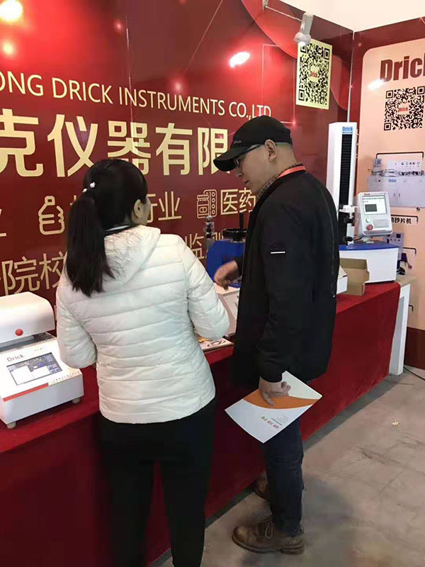 上午九點,一曲歡快的《好運來》為展會開幕式增添了濃墨重彩的一筆。本次展會,我們展出的產品有:電子拉力試驗機、壓縮儀、耐破度儀、測厚儀、熱封儀、耐折度儀、戳穿度儀以及各種取樣器。展會開始不久,憑借產品的外觀、性能以及參展人員專業的產品知識、銷售技能,我們的展臺前來了一波又一波的觀展人員。為企業帶來了更深層次的潛在客戶。